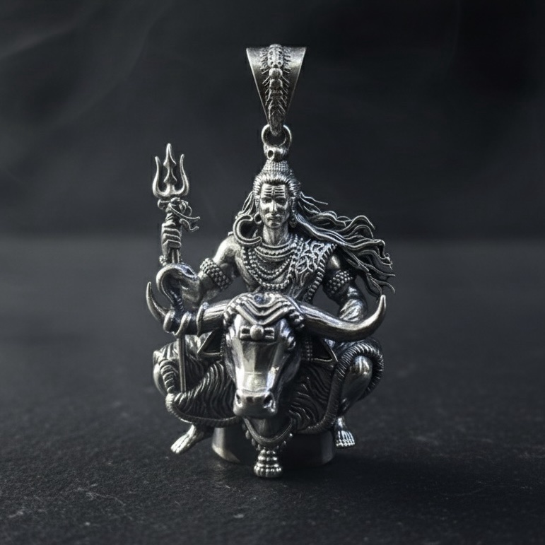New Shiva Nandi™ — Handcrafted 92.5 Real Silver Oxidised Pendant (35g) by iJewellery.in
