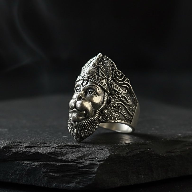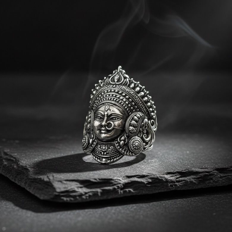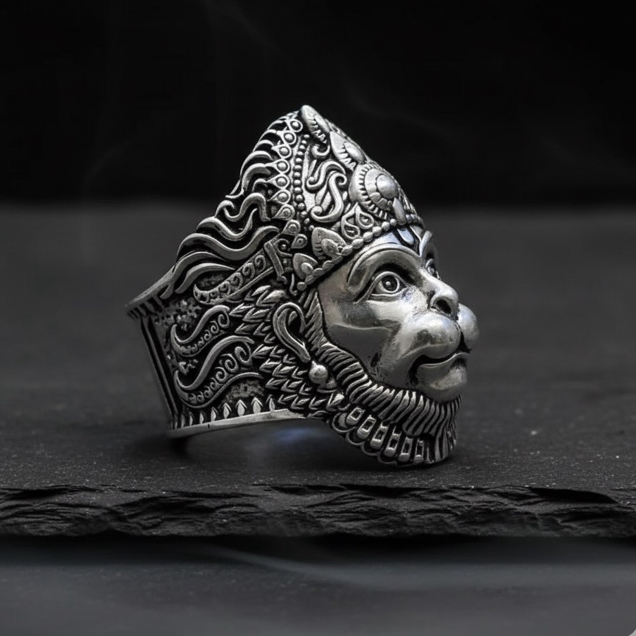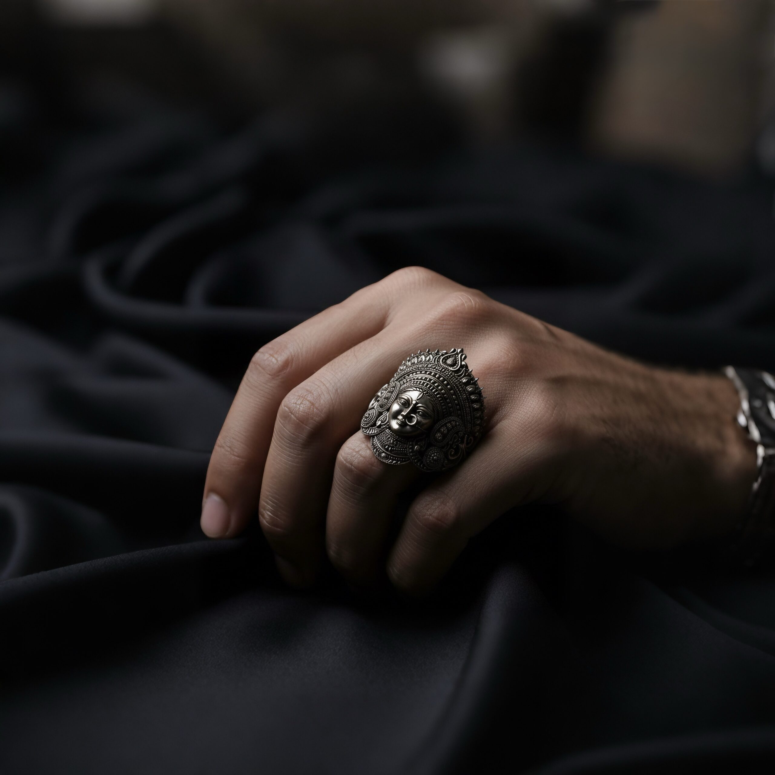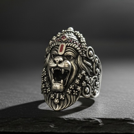 Divine Narsimha™ — Handcrafted 92.5 Real Silver Oxidised Narsimha Ring with Stone Work | iJewellery.in