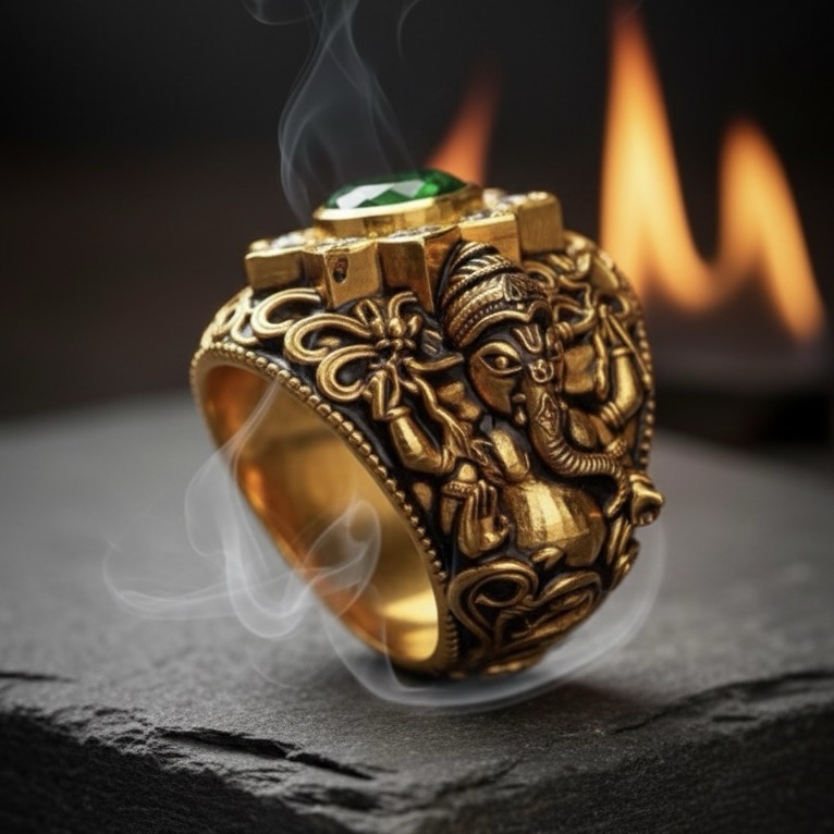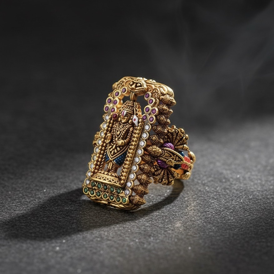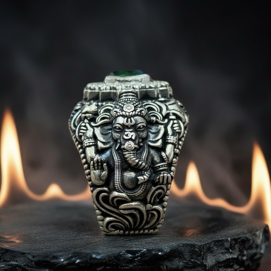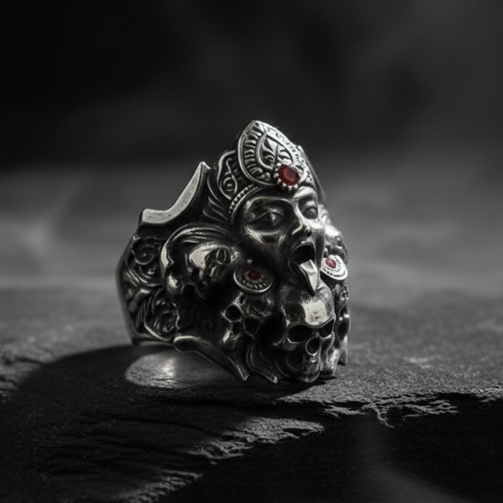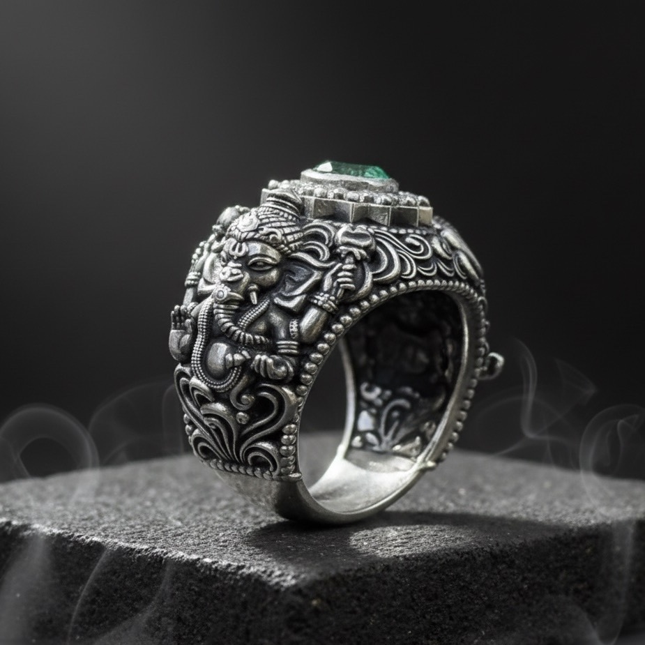 Divine Narsimha™ — Handcrafted 92.5 Real Silver Oxidised Narsimha Ring with Stone Work | iJewellery.in