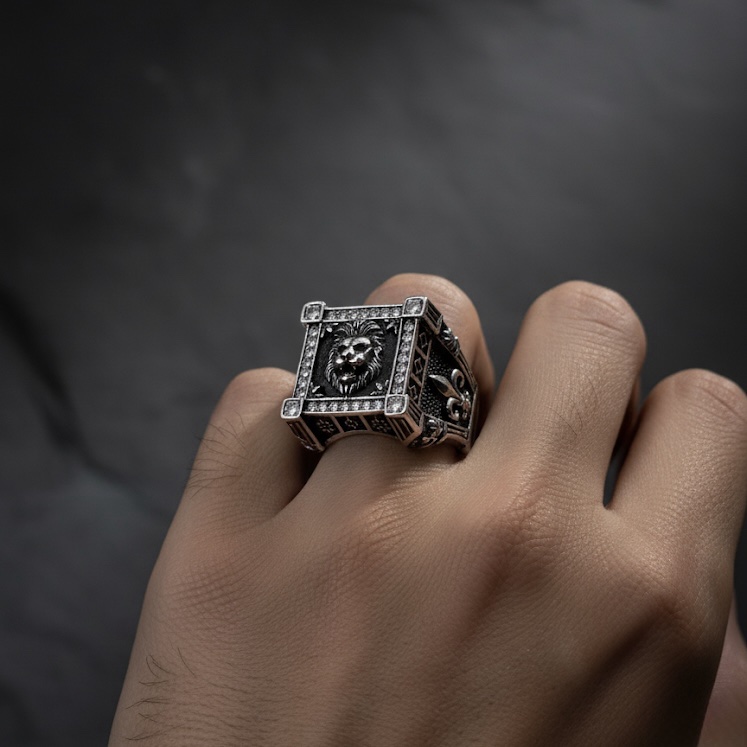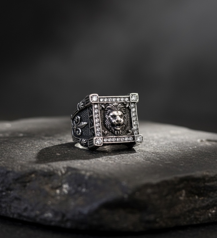 Royal Lion Emblem Ring – Handcrafted Oxidised Silver Power Signet for Men | iJewellery.in