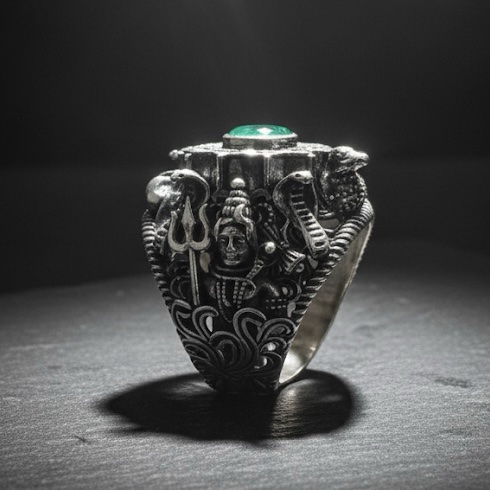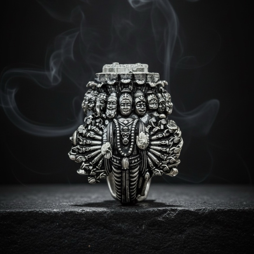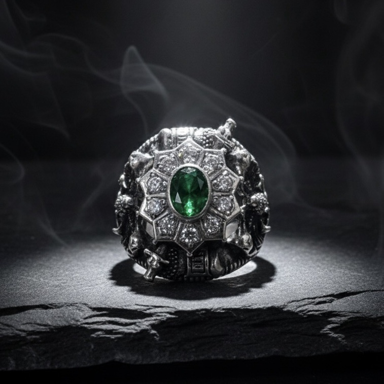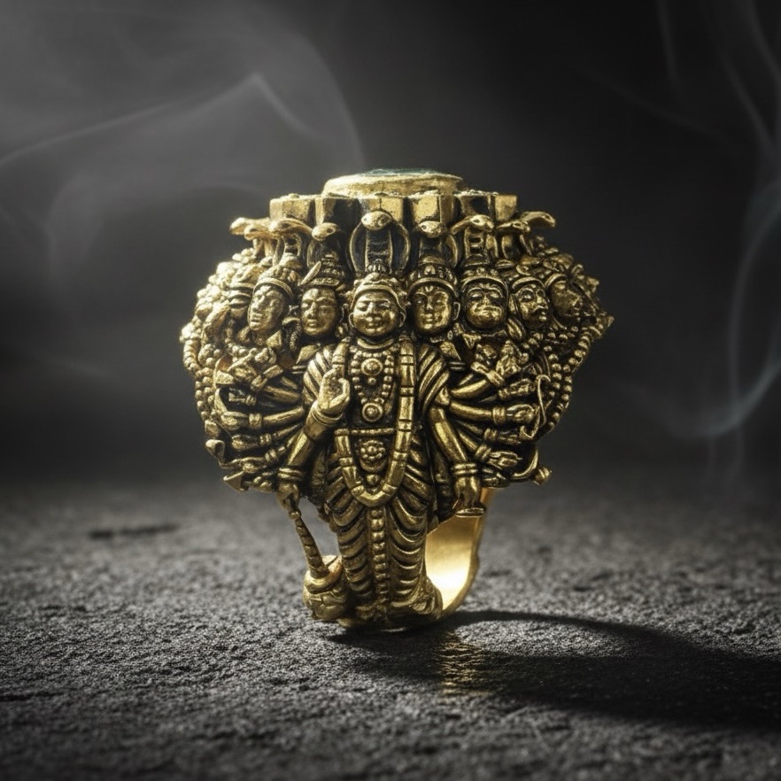 Vishnu Dashavatara Ring in Pure Silver with Gold Plating | Green & Sparkle 12 small Stone Studded |All size available | ijewellery.in