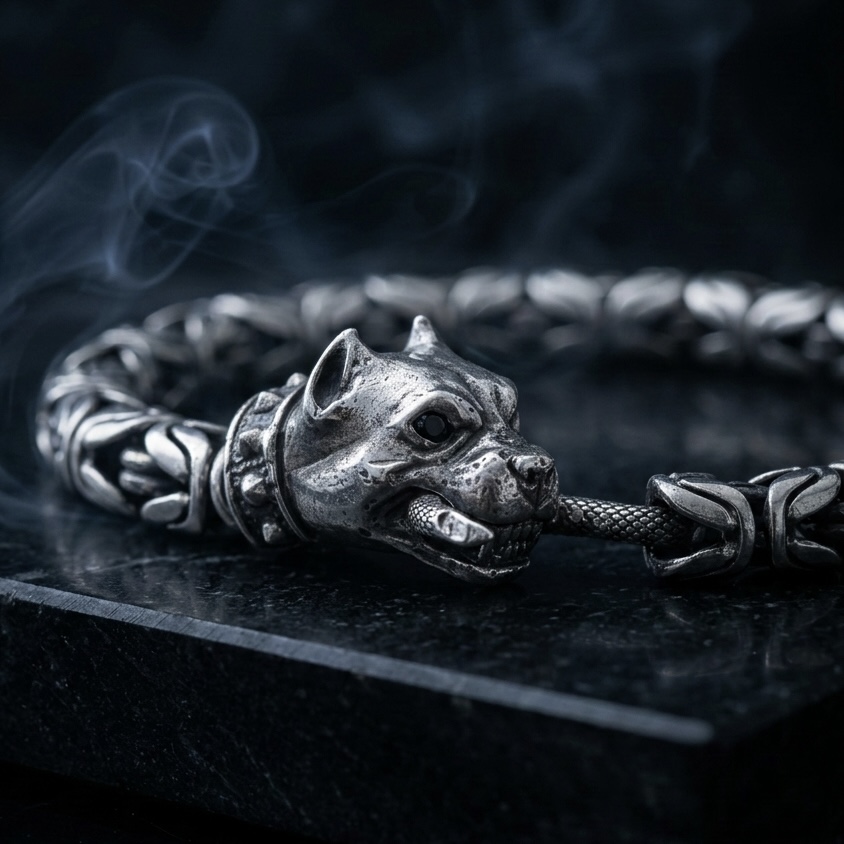 Pitbull dog Head Silver Bracelet for Men | Designer Dog Lock Bracelet – ijewellery.in