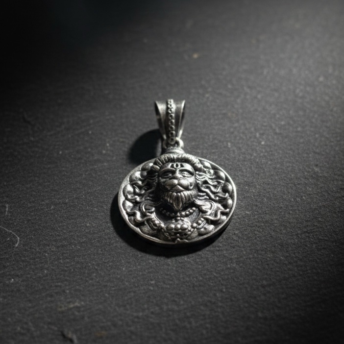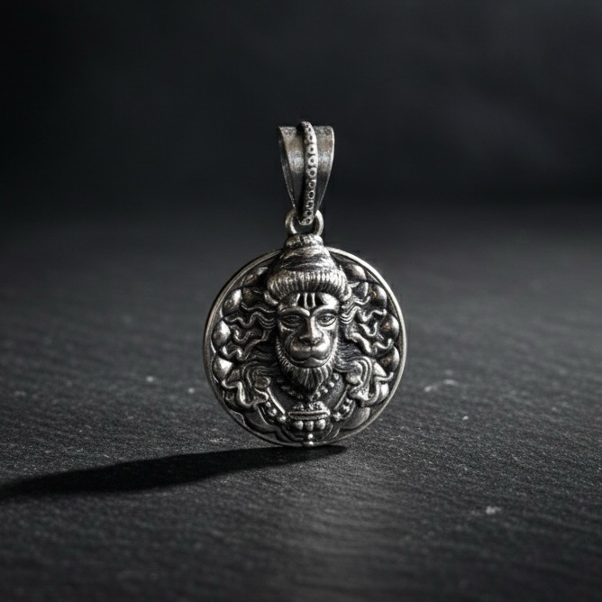 Veer Hanuman Coin Oxidised Silver Pendant – Handcrafted Real Silver Symbol of Strength, Protection & Unshakable Faith