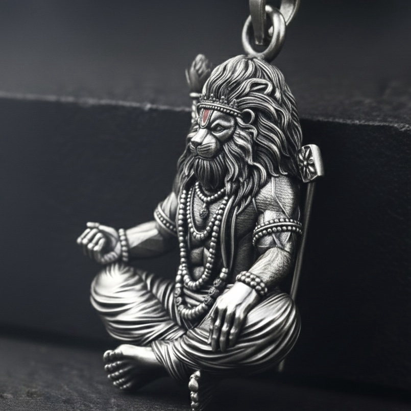 iJewellery.in Original — Hanuman Gada Pendant | Handcrafted 92.5 Sterling Silver (Oxidised Finish) — High-Detail Engraved Masculine Amulet, Comes with Premium Wooden Box