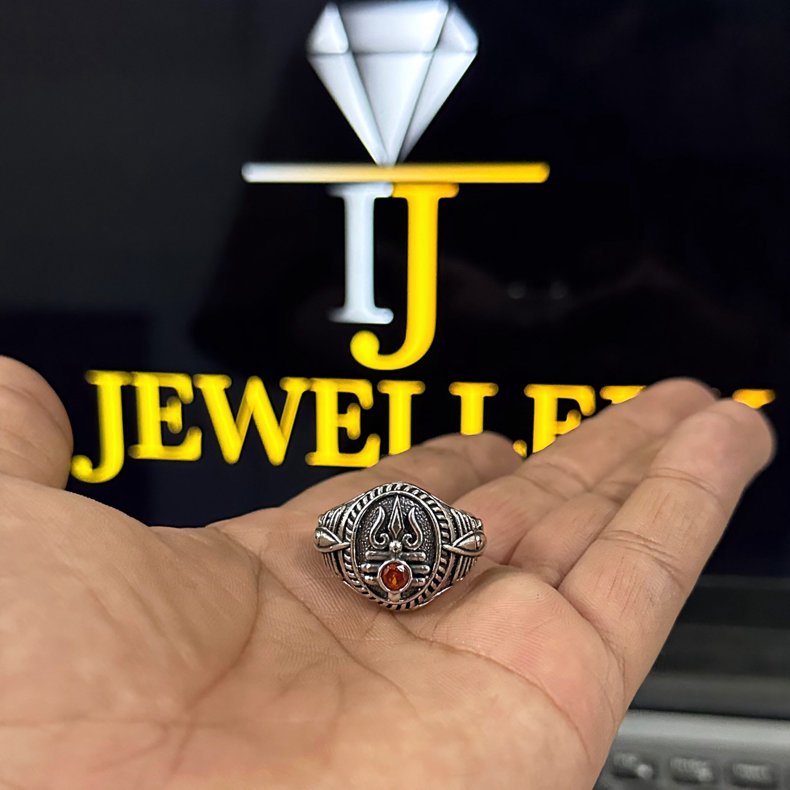Real silver trishul engraved ring 92.5 real silver